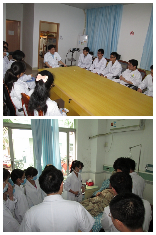 为加强对我院轮训医生的带教工作,我院定期组织轮训医生开展教学查房,2013年11月21日,在医院内一科、科教科的组织下,2013级轮训医师参加了一堂生动的“急性脊髓炎”病例教学查房。 急性脊髓炎是指各种感染后引起自身免疫反应所致的急性横贯性脊髓炎性病变,以病损平面以下肢体瘫痪、传导束性感觉障碍和尿便障碍为特征,在基层医院中较为少见。 经由轮训医生们询问病史、体格检查,随后提出若干问题,如中医针灸康复的时机、腰髓和骶髓的定位、大剂量应用激素否应预防使用抗生素、激素冲击治疗量等,内一科陈晓东主任结合病情分别作出深刻讲解。 考虑到基层医院教学资源相对不足,一些季节性、地方性疾病较为少见,对于部分非常重要而病人相对较少的病种,则充分发挥网络优势,制作相关疾病生动的课件,组织分散在各个科室轮训的医生一同参与教学查房。通过定期开展教学查房,使我院的带教水平得到很大的提升。