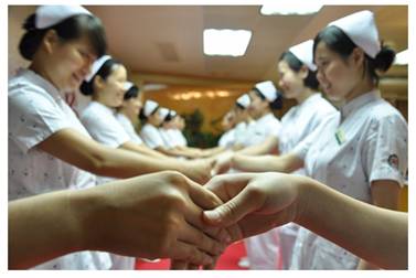 为扎实提升我院护理服务水平,打造高水平护理服务队伍,2013年6月份,经过严格的考核,从全院范围中挑选了3名优秀护理人员参加了北京医科大学医护礼仪规范化培训班,并获得内训师证书。 护理礼仪属于职业礼仪范畴,是护士在进行健康服务和医疗护理过程中,逐渐形成的被大家公认并自觉遵守的行为规范与准则。它既是护士道德修养和内在素质的外在表现,又是护士职业道德的具体体现。为秉承“三好一满意”的服务理念,借着全民修身行动的东风,医院适时地铺开打造高水平护理服务团队的活动。8月15日晚,在医院住院部六楼大会议室举办了护理礼仪规范化培训班,本次培训班从每个科室挑选2-3名优秀护士进行培训,培训内容包括主要为医患沟通及礼仪,由3名学成归来的内训师马佩莲、郑翠环、曾玲担任培训老师。 培训班上,内训师们指出,随着护理工作的社会化,护士与患者之间相互交往的增多,语言礼仪、行为礼仪、仪态礼仪、仪表礼仪等开始大量融入护理工作的实践中,现代护理礼仪绝对不是单纯的表现在护士的外表,更不是仅仅局限在服饰要求、面部修饰和站、立、行、走等方面,护理礼仪的本质是如何做人、为人的问题。