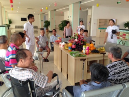 又是一个花好月圆的中秋佳节,在这种浓浓的气氛中,我院的康复中心的工作人员早早的布置好场地,准备了一大桌的水果,月饼,零食等,迎接每日来这里进行理疗的康复病人,并且为他们每人都有一份小礼物,让他们感受中秋的温馨和快乐。 今天和往常一样,老人们一早来到康复中心做治疗,他们早已和医护人员像朋友一样相处了,有说有笑。这一天,中心里都挂满了灯笼,五颜六色的,很温馨,虽然不是吃什么大餐,但大家都非常享受这个过程,我们一起聊天,拍照,说笑,看到他们脸上都布满了幸福的笑容 。老人们向大伙讲述他们的人生经历,也勉励年轻的医务人员脚踏实地为自己将来的人生道路铺好坚实基础。 此情此景,让我想起了一首诗。