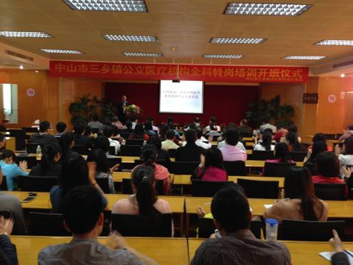 为贯彻执行《2014—2015年广东省全科医生转岗培训项目实施方案》的文件精神,深化医药卫生体制改革,在中山市卫计局的大力支持和指导下,由三乡镇党委、政府主导,三乡镇卫计局、三乡镇社区卫生服务中心的精心筹备,2014年11月24日,三乡镇全科医生转岗培训班在中山市三乡医院隆重开班。 中山市卫计局科教科韦文波科长、三乡镇分管医院的黄基沿局长、广州医科大学公共卫生学院王家骥院长、广州医科大学继续教育学院王心旺副院长等出席本次会议,来自三乡医院、三乡镇各社区卫生服务站医生、护士共90余人参加了开班仪式。 开班仪式上,黄基沿局长、韦文波科长先后发表讲话,对本期培训班的举办给予厚望,要求主办方必须认真组织,精心安排,严格施教,并对本期培训班的顺利开班表示热烈祝贺,强调要高度重视社区医疗卫生服务的能力建设,注重基层全科医生的培养,不断提高社区医生的诊疗技术,希望学员们珍惜机会、努力学习,出色地完成培训课程。 通过规范化的理论和技能培训,培训学员的理论素质和临床技能将得到全面提高,学员在结业后将能更好地为居民提供医疗卫生保健服务。通过本期培训班的开展,对适应辖区群众基本医疗卫生服务需求,提高三乡镇医疗卫生人员整体素质和全科医疗服务水平有重要意义。