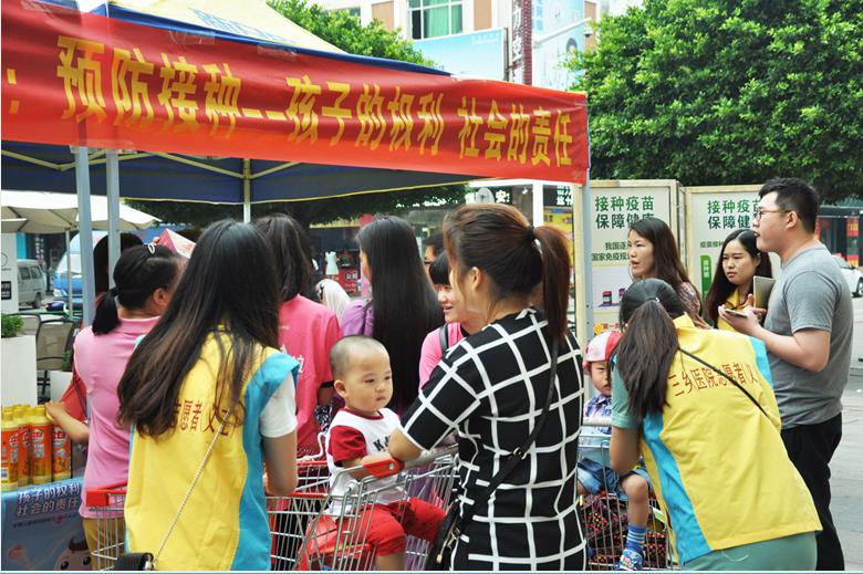 为了提高群众对计免工作的认识,更好的推动预防接种工作的落实,借助第29个“全国儿童预防接种宣传日”,4月25日上午,我院在顺昌广场举办主题宣传活动。今年的宣传主题是“预防接种—孩子的权利,社会的责任”。 为了更多的群众参与到我们的宣传活动当中,今年的宣传活动采用有奖问答的形式,家长们都非常的踊跃地参与到活动当中。现场还悬挂了主题横幅,展出宣传板8块,为前来咨询群众解答疑问,向过往群众派发宣传资料,并向他们传达国家免疫规划、疫苗接种等相关政策,呼吁全社会为了儿童健康,请家长正规及时接种疫苗 。 通过本次活跃的宣传,增加医务人员与家长们的互动,使广大群众充分了解了国家免疫规划相关政策,了解预防接种的必要性和重要性,接种疫苗是每一个儿童的权利,只有按时接种,适龄儿童才能及时产生有效的保护性抗体,才能有效降低传染病的发病率,保护儿童健康,提高儿童素质。 免疫规划工作是一项利在当代、功在千秋的惠民工程,需要全社会的广泛参与,特别需要适龄儿童家长的支持和配合;使每名儿童都能享受到国家免疫规划疫苗的免费接种服务不仅是法律法规的要求,也是每个孩子应享有的权利。 为了让每名儿童都得到免疫接种的机会,为了儿童的健康,希望各位家长及时带孩子到预防接种门诊为孩子接种疫苗,保护您孩子的健康。