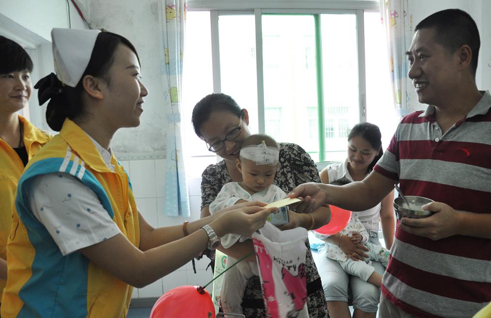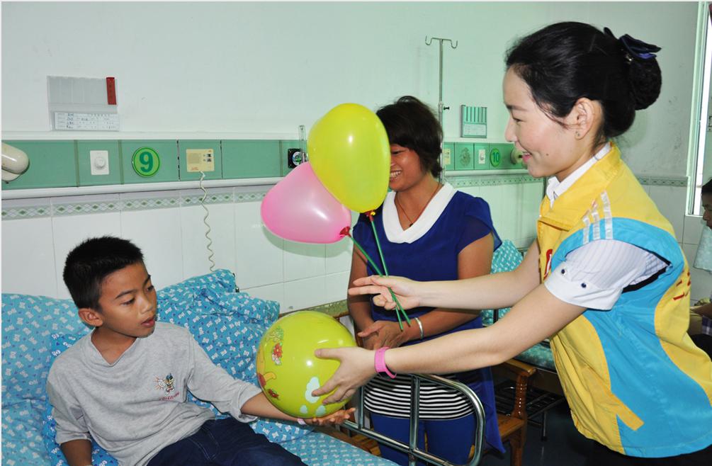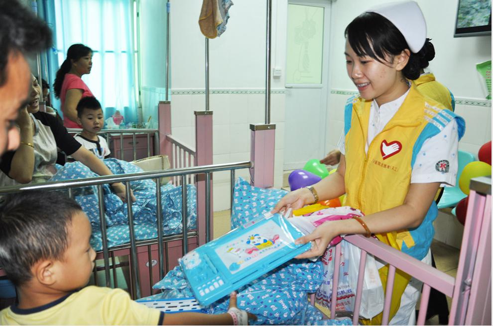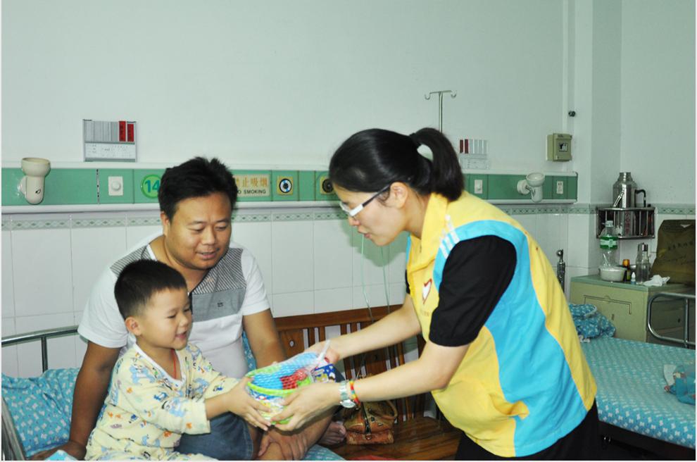 为了让每一个来院就诊的小患者能够享受到“六一儿童节”的快乐,医院团总支联合儿科,精心准备,特意为孩子们送去节日礼物。志愿者们一个病房一个病房的为孩子送去礼物,当孩子拿到礼物的时候都开心的笑了,一个小患者拿到写字板的时候就说“我要读书写字咯”。 我院每年都在儿童节、圣诞节开展这样的活动,不仅仅是为了表达一份祝福,体现对患者的人文关怀,希望孩子们能开开心心,早日康复出院。
