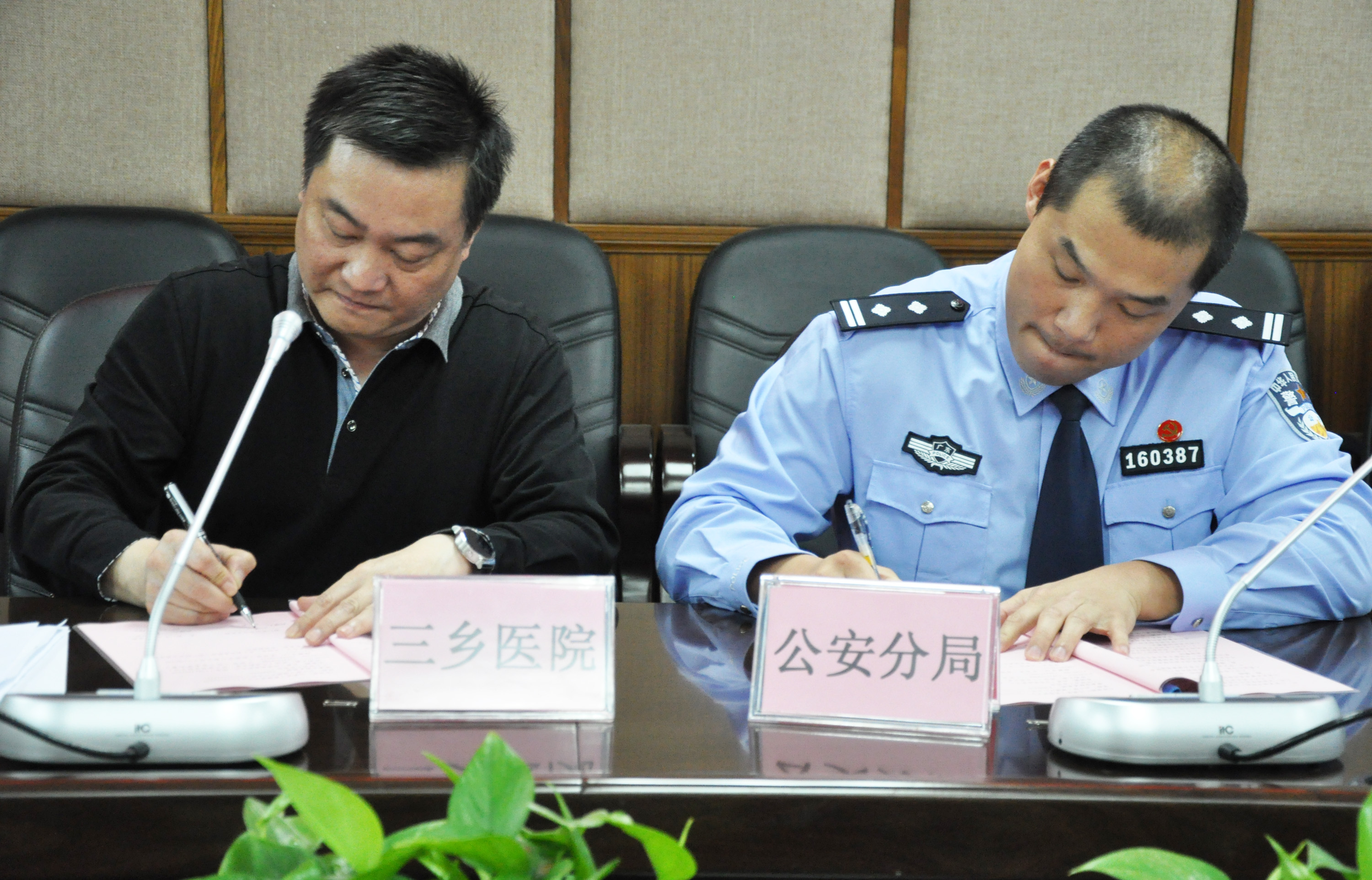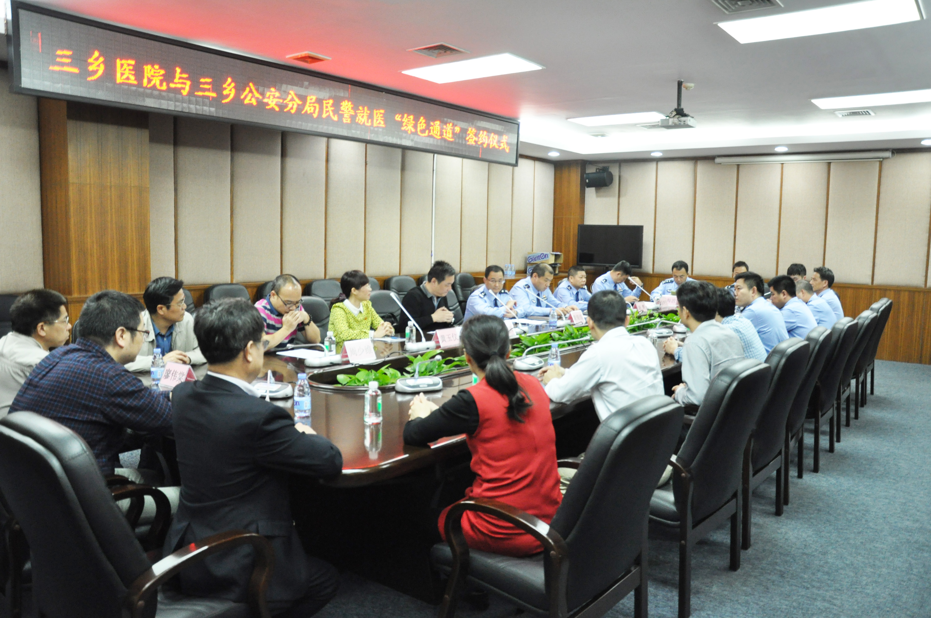 2017年4月14日,我院与中山市公安局三乡分局隆重举办三乡警务人员“就医绿色通道”签约仪式。我院领导班子及相关部门负责人,三乡公安分局领导班子及相关部门负责人共同出席签约仪式。 会议上,公安分局肖勇政委、我院周少维副院长分别介绍《协议书》内容及就医流程后,双方单位共同签订协议。 接着,李文院长代表院方感谢三乡公安分局长期以来在我院创建“平安医院”工作上予以的大力支持,我院将不断提升服务水平和服务质量,为三乡警务人员提供更为快捷、便利的服务通道,并定期为三乡公安分局举办健康教育知识讲座。 最后,黄锦炼局长代表三乡公安分局对我院表示感谢,表示将一如既往的全力妥善处置好医院各类医患纠纷,打击“医闹”和各类影响医院正常秩序的违法行为。要求全局民警(职工)倍加珍惜就医“绿色通道”资源,严格遵守医院相关规定,尊重医护人员,维护好“警医”良好关系,把“绿色通道”打造成为一条警务人员与医务人员心连心的桥梁! 这一“绿色通道”协议的签署,是我院与三乡公安分局的互动合作进一步升华,我们将以此为契机为“平安三乡”做出更大努力。 中山市三乡医院 2017年4月14日