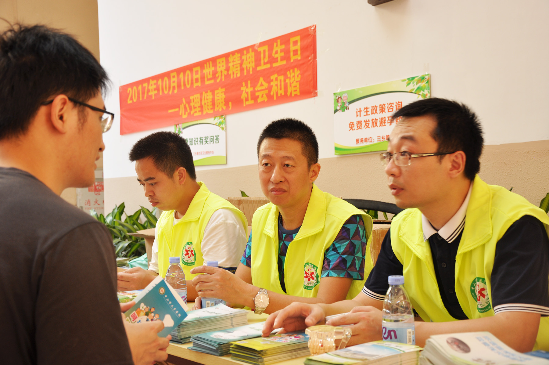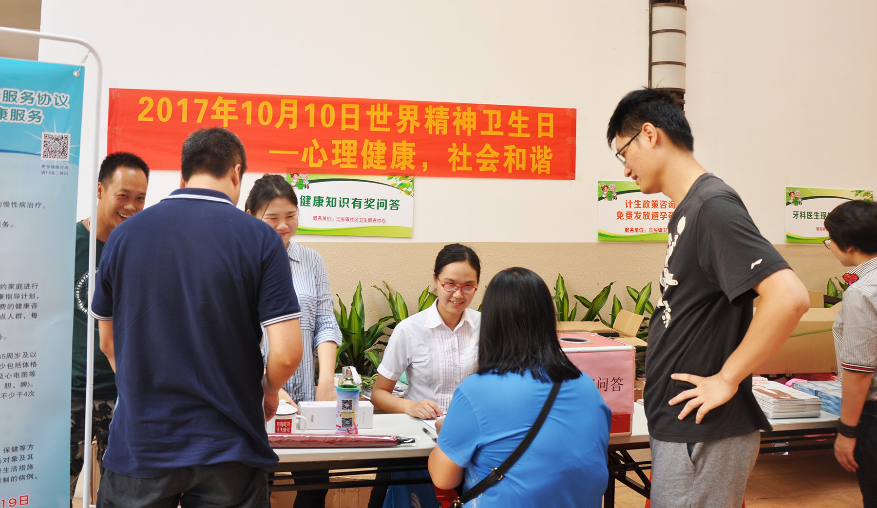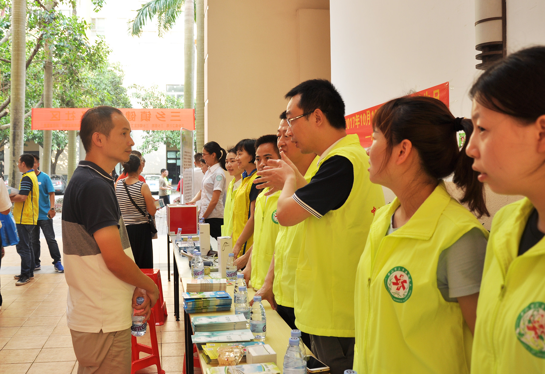 为提高群众的健康意识,普及健康生活方式,9月16日下午,我院联合镇卫计局、社区卫生服务中心、爱卫办、食药所、圩仔居委会、雅居乐等单位,在雅居乐客户服务中心开展了大型义诊宣传活动。 本次义诊项目包括心血管、内分泌、口腔科、心理健康、计生等项目,向群众宣传糖尿病、高血压、腰腿痛、骨质疏松、“二孩”、口腔健康等健康宣教知识,提供义诊服务,发放健康宣传资料,讲解“小病在基层,大病到医院,康复回社区”的分级诊疗政策。现场还向群众发放了卫生计生用品。 通过大型宣传义诊活动,主办单位希望通过广泛的宣传号召,提高群众的健康意识,养成良好的生活方式,引导群众更加科学、合理、安全、便捷、省钱地预防和治疗疾病,从而减少疾病带来的危害。 中山市三乡医院 2017年9月18日