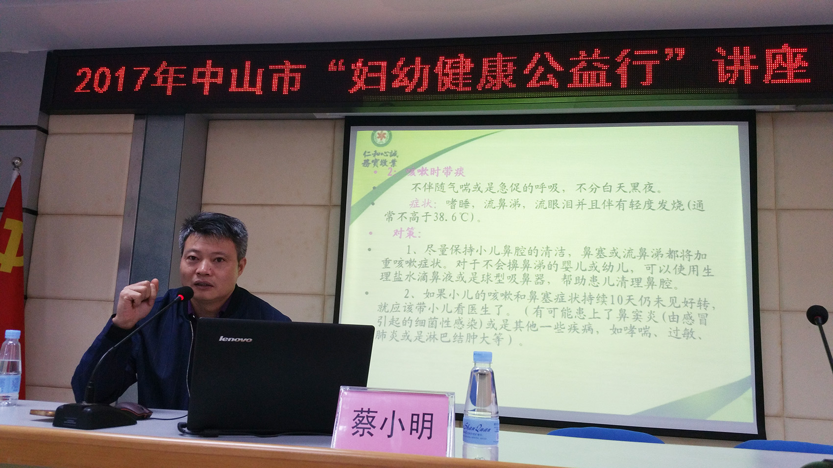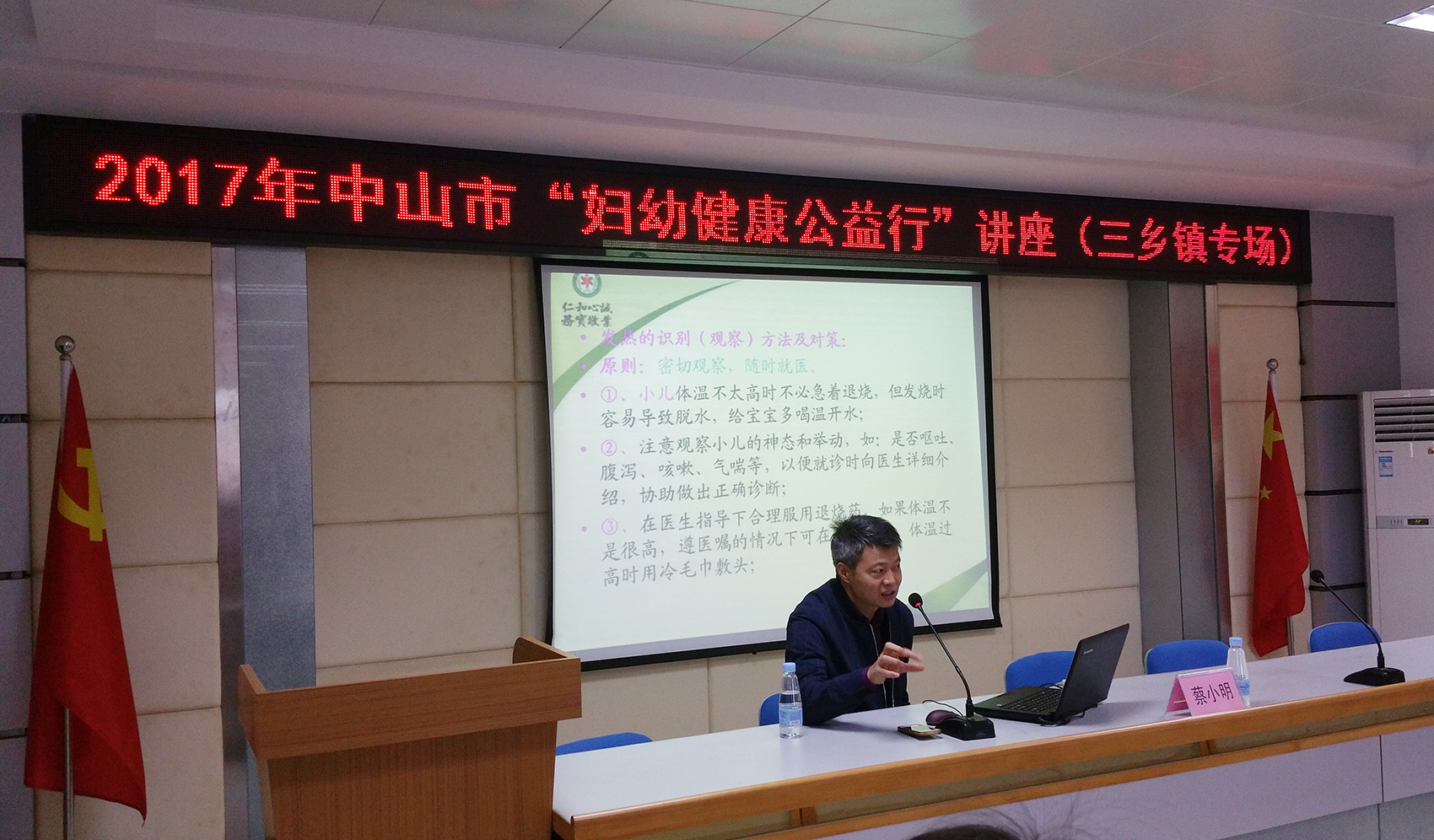 11月19日上午,我院联合镇妇联、新圩村委在新圩村委会会议室开展了一期“妇幼健康公益行”,本次主讲专家为我院儿科主任蔡小明,主题为《婴幼儿常见病症的早期识别与对策》。 当天天空还下着毛毛的冬雨,但是还是阻挡不了家长们学习的热情,活动共吸引了132名0-6岁儿童家长前来参加。有一位家住平南皇冠附近的家长,带着两名小孩冒雨前来现场听讲,这让我们倍感鼓励。 课堂上,蔡主任主要从如何判断婴幼儿发热、小儿抽搐、咳嗽、支气管炎、母乳喂养、宝宝便秘、偏食及脸色不正常识别等内容,指导家长如何进行观察和识别,并对应对相关症状的对策进行详细讲解。 课后,蔡主任还对现场提问家长进行养育困扰的解答,家长们也纷纷表示这样的课程非常适合他们的实际需要,对孩子病症的初期的家庭识别、干预及处理方法,有了实际性的指导,课堂所学内容对自己受益。 (通讯员:三乡镇妇联彭健)