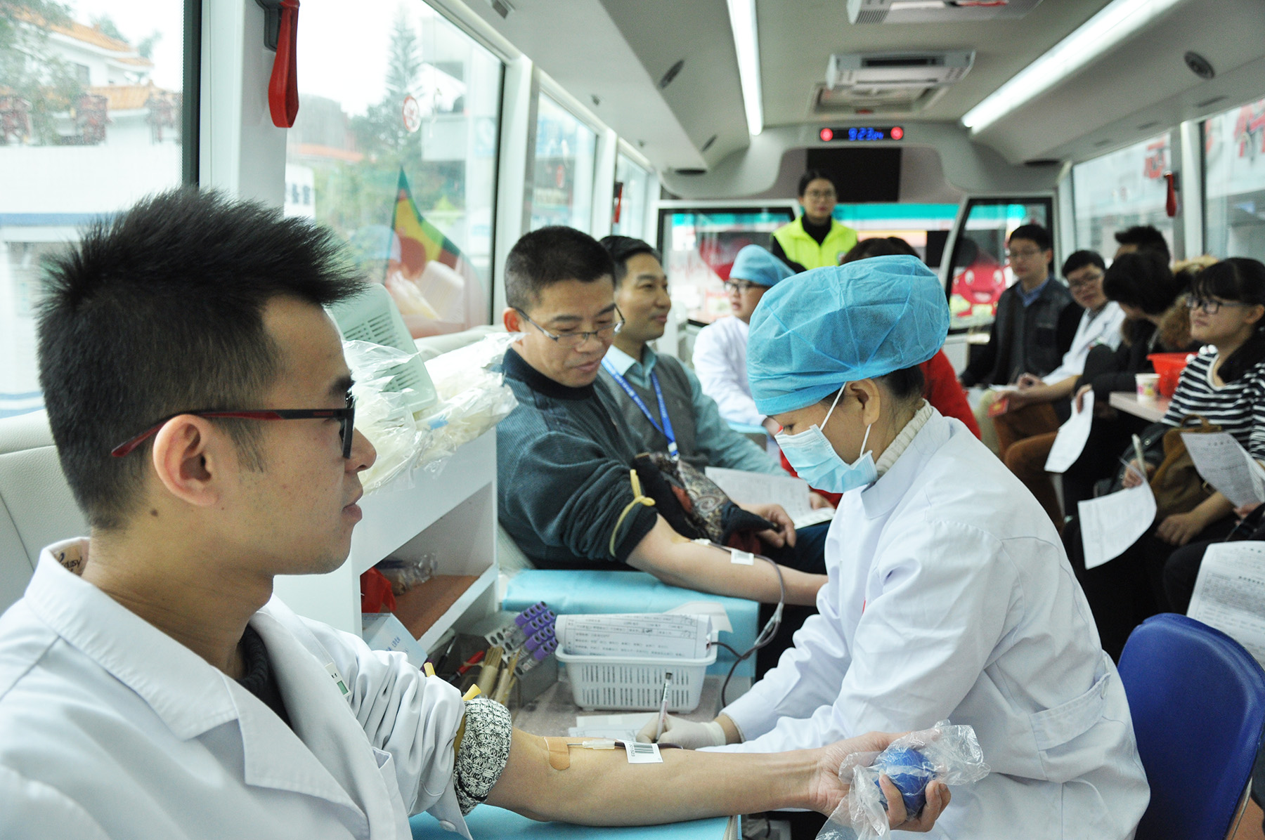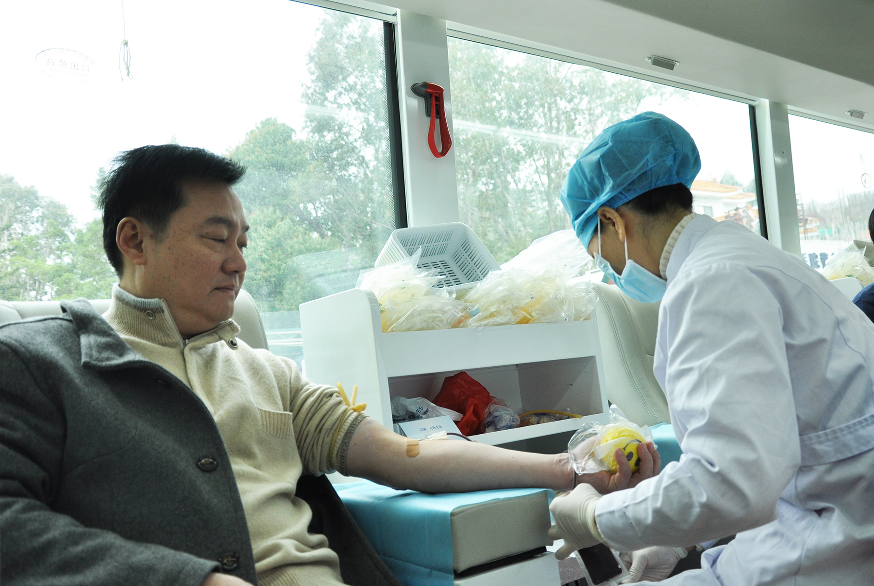 根据中山市中心血站的安排,2月11日上午8时30分中心血站的献血车准时开进了我院,我院工作人员便积极协助登记填表、查看献血员身体状况等采血工作,以确保采血工作顺利进行。 腊月的中山,寒风凛凛,但献血场面热情高涨。除了本院职工外,还有很多其他爱心人士身受现场气氛感染,走上献血车,撸起袖子,奉献爱心。此次献血活动持续到上午11时,共有50余人成功参加了献血。 每年2月前后,我院都会与中山市中心血站联合开展无偿献血活动,这种无偿献血模式,既方便了患者家属就近参加无偿献血,又近距离的向用血人群宣传了无偿献血,将无偿献血和临床用血紧密的联系在了一起,让广大市民和用血患者能亲身体会无偿献血的过程和意义,为我市无偿献血事业作出贡献。 中山市三乡医院:陈立群 2018年2月11日