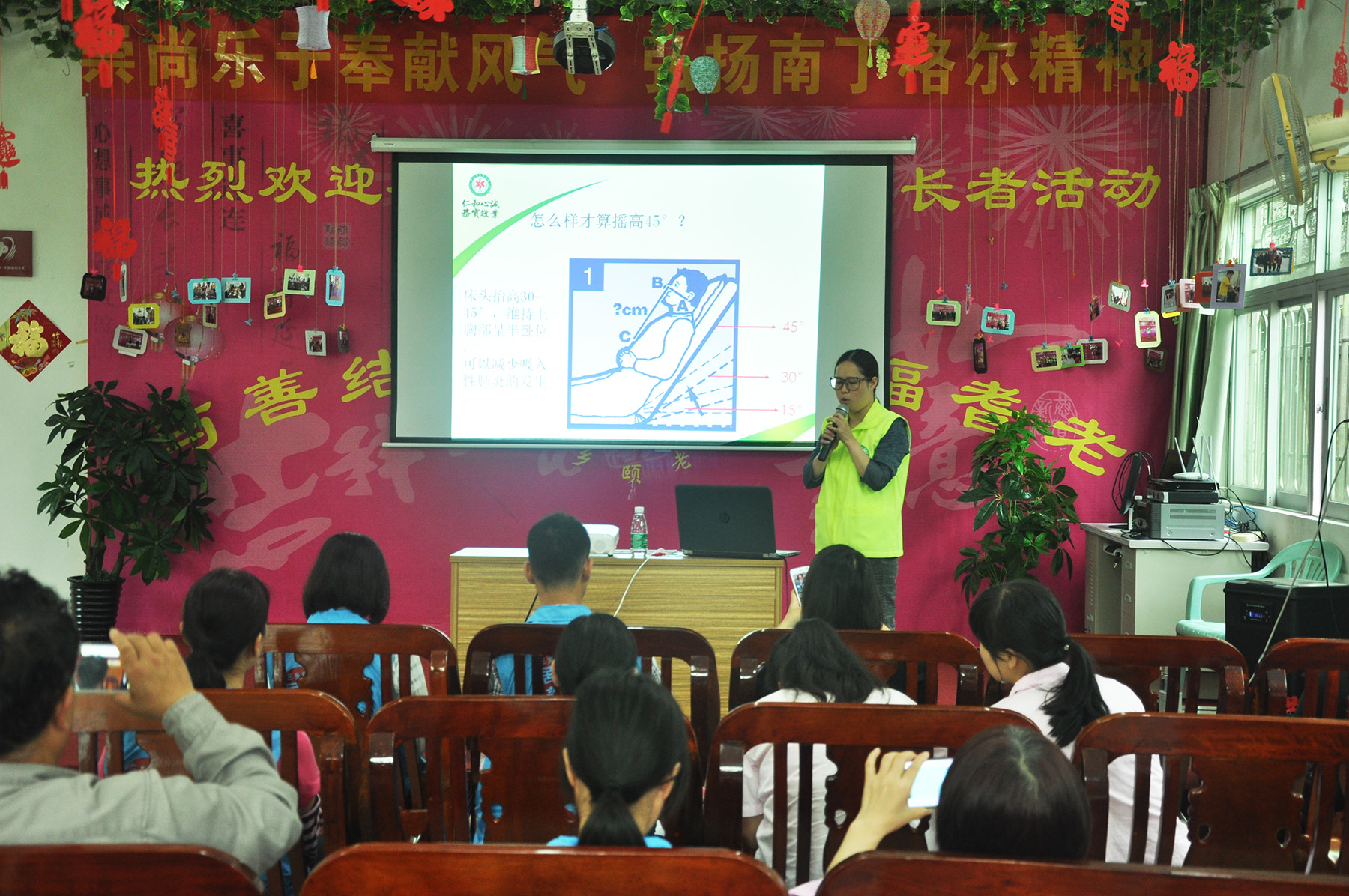 为崇尚乐于奉献风气,弘扬南丁格尔精神,在“国际护士节”来临之际,结合“世界卫生日”活动,我院护理部联合团总支、客服部等部门组成志愿服务队,于4月24日走进三乡敬老院。 为开展好本次志愿活动,给敬老院的老人们提供更好更切合实际的服务,护理部事先到敬老院方沟通收集需求意见。主要确定“老年人护理”的知识讲座、义诊服务两部分。 上午时分,正值活动开展之际,我镇风雨大作,但也阻挡不住我们与老人们的“约定”。首先,由我院内科护士黄利平为敬老院及居家养老中心的工作人员讲授“老年人护理”的相关护理知识;随后志愿队伍分为三组给敬老院的工作人员现场示范如何为卧床老人翻身扣背、鼻饲、上下轮椅、胃管尿管固定等的方法及注意事项。 下午,我院再次组织志愿队伍到敬老院开展义诊活动,活动也邀请了急诊科、内一科、重症医学科、质控科、疼痛科等科室主任加入。志愿者们分工明确,有条不紊地为老人们测量血压及血糖、了解身体状况等等。各位主任也针对每一位老人的实际情况,进行了现场检查及指导。 一天的志愿活动,受到了敬老院方及老人们的热烈欢迎及赞许。志愿服务工作是我院的一项常态化工作,用实际行动把医院的服务送至群众身边。 中山市三乡医院 2018年4月24日