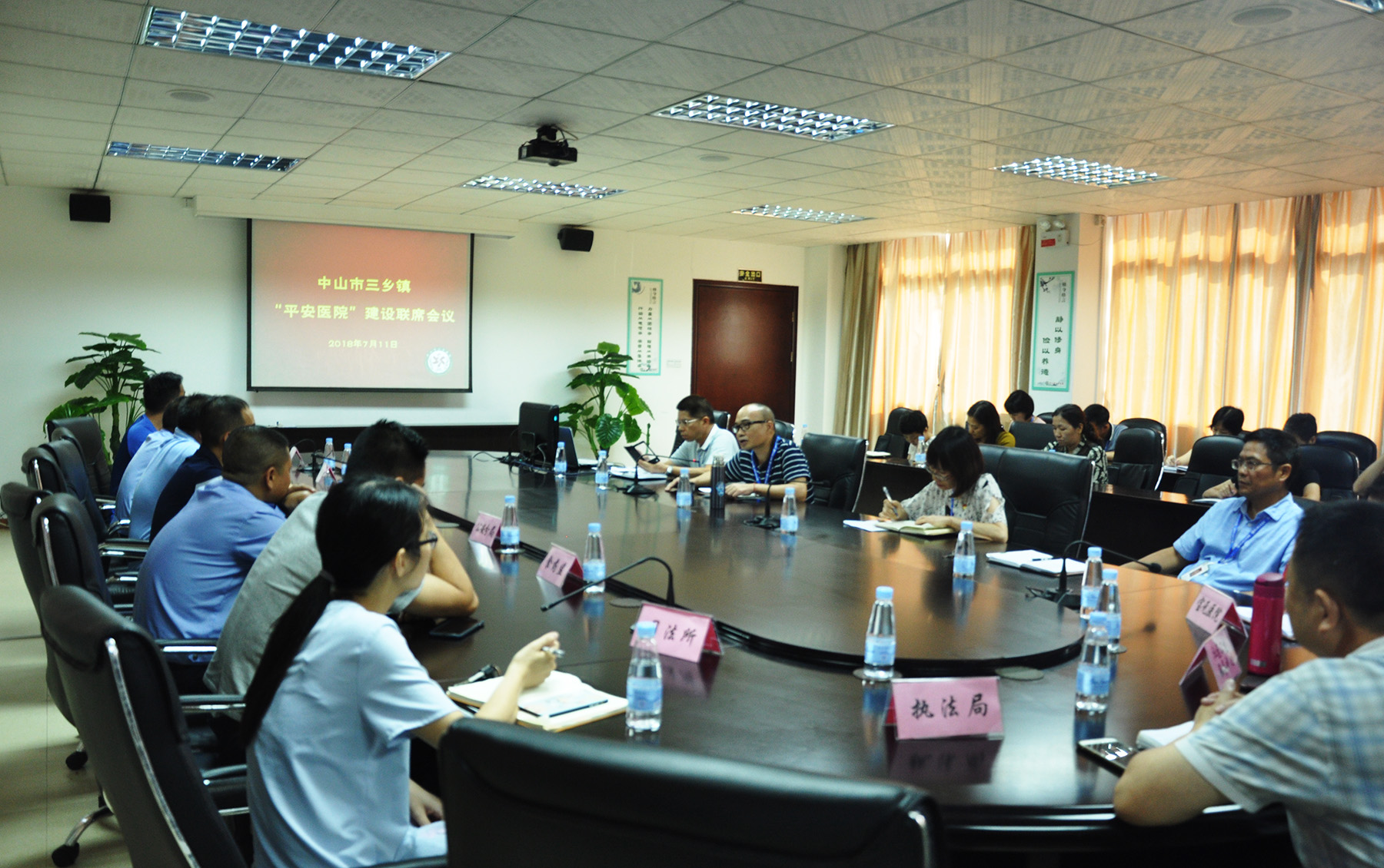 为了进一步推动平安医院建设,打造更加安全、有序、和谐的就医环境,7月11日下午,三乡镇“平安医院”创建工作联席会议在我院召开,镇卫计局、公安分局、消防大队、司法所、食药所、社会事务局、工商分局、社区卫生服务中心、宝元医院等部门参加会议。会议由镇卫计局局长何承建主持。 我院党总支部副书记黄玉仪、副院长周少维分别介绍了医院“平安医院”的建设工作情况。会上,各部门也讨论了目前医院所处旧镇区,人流较复杂、常发生的事件应对措施进行相互交流。最后,院方向各部门一直以来对医院创建工作的大力支持表示感谢。 会上,联席会各部门也作了发言,同时也向我院提出了宝贵意见:一是做好预警机制,继续完善院内外监控体系,进一步加强治安队伍的管理机制。二是把医疗纠纷处理关口前移,把“事后处理”变为“事先预防”。三是加强医患双方的有效沟通,使双方形成共识并建立信任关系。并对医院安保装备配置、治安人员技能培训、医护人员安全防范意识提高等提出了针对性建议。 通过此次座谈,将进一步推动我镇“平安医院”的建设,警医关系、警民关系,为患者提供安全有序、法制化的就医环境,为保障医务人员人身安全,共建“平安医院”做出积极的贡献。 中山市三乡医院 2018年7月12日