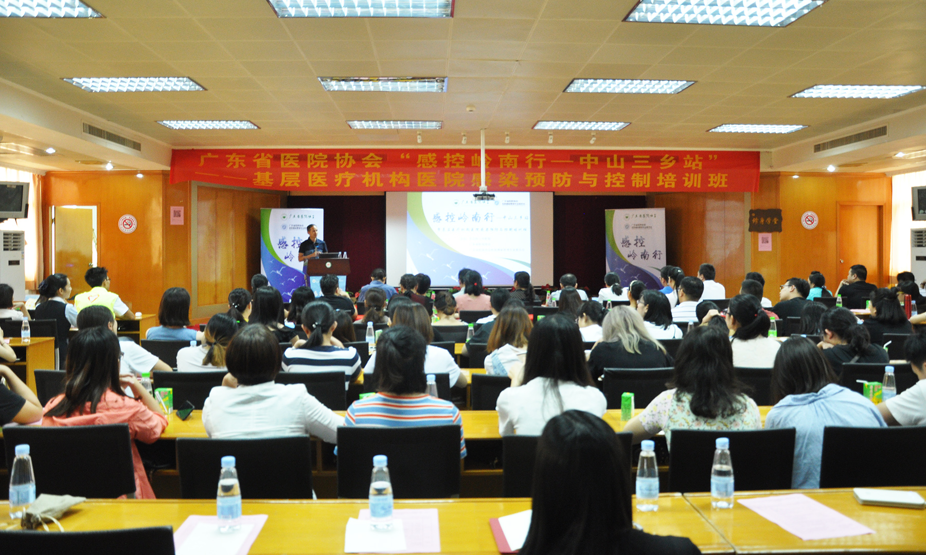 8月17日下午,我院与广东省医院协会医院感染管理专业委员会联合举办的《广东省医院协会“感控岭南行—中山三乡站”基层医疗机构医院感染预防与控制培训班》在我院顺利召开,此次培训班特邀广东省医院协会医院感染管理专业委员会主任委员邓子德教授、中山大学肿瘤防治中心赵擎宇教授和中山大学附属第三医院院感科何达秋科长到我院进行了专题授课,中山市各家医疗机构的医院感染管理专(兼)职人员将近200人参加了本次培训。 会上,中山市卫计局副局长刘文君、三乡镇卫计局局长何承建、我院院长李文,分别作了致辞发言。 随后,受邀专家分别进行专题授课。中山大学附属第三医院邓子德教授讲解了新形势下感控工作者面临的挑战和机遇;中山大学肿瘤防治中心医院赵擎宇教授讲解了基于DDD值的抗菌药物应用管理方法;中山大学附属第三医院院感科何达秋科长讲解了医院化学消毒剂的合理使用。专家授课内容非常丰富和实用性,对我市基层医疗机构的院感管理人员工作具有非常大的启发和帮助。 同时南方医科大学珠江医院钟晓祝主任和广州市第八人民医院黄丽芬主任分别到我院血透室、新生儿室、手术室、重症医学科进行了现场指导,为我院在院感管理工作中存在的疑问进行了详细的解答。 通过此次广东省医院协会医院感染管理专业委员会开展的“感控岭南行”下基层送知识活动,这对我省基层医疗机构医院院感管理人员掌握了医院感染基本理论和医院感染预防与控制的专业知识起到积极的帮助作用,同时也促进学术发展和交流,对提高我市医院感染防控能力、管理技能和监控水平具有重要指导意义。