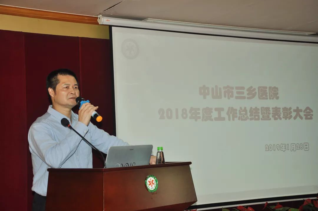 1月28日下午,我院2018年度工作总结暨表彰大会在六楼大会议室召开。三乡镇党委委员潘锡有、三乡镇卫健局局长何承建出席大会,医院领导班子、全体中层干部、职工代表近200人欢聚一堂,共同回顾过去、展望未来。会议由医院党总支副书记黄玉仪主持。 “2018年是不平凡的一年。这一年,全院职工精诚团结、锐意进取,在三乡镇党委政府、市卫健局的正确领导下,上下一心、凝心聚力,顺利通过“二甲医院”复审。这一年,新医院破土动工,为我院迈向新征程、实现新目标、攀登新高峰奠定坚实的基础。 李文院长作2018年度工作报告,通过幻灯片的形式,图文并茂展示了三乡医院在2018年的成长轨迹,见证全体员工的奋发努力。李院长表示,2018年顺利通过“二甲”复审,新医院建设全面启动,开启了医院建设新的时代。在接下来的工作中,将根据市卫生健康局、镇委镇政府的要求,牢固树立“高质量发展”的工作理念,促进医院党建工作,加强专科建设力度,不断提高各专科解决复杂疑难病例的诊疗能力,满足人民群众大病不出镇的期盼;健全完善医院全面质量管理体系,加强十八项核心制度管理控制,推动医疗质量和安全水平有较大改善;提高医院运营质量和可持续发展水平;继续加强人才队伍建设,提高职工待遇,推进医院文化建设,优化后勤服务保障水平。 随后,潘锡有委员在致辞中表示,他充分肯定医院的在2018年度取得的成绩,完满完成镇党委政府交办的任务,也对医院发展寄予厚望。他希望医院全院干部职工按照李院长所做2019年的工作部署,要注重实实在在的综合素质提升,注重业务素质、政治素质和法制素质的共同提升。 同时,潘锡有委员向医院提出了几点任务要求:1、抓好政治纪律,一定要以习近平新时代中国特色社会主义思想为指导,全面贯彻党的十九大精神,并认真学习贯彻习近平同志视察广东重要讲话精神,牢固树立四个意识、坚定四个自信,让医院医疗质量上一个新台阶;2、加强班子建设,医院领导班子团结一致带领全体员工奋发图强,不断提升医院医疗服务质量;3、严肃工作纪律,展示医务人员的良好精神风貌,对工作纪律涣散、工作不作为的现象将予以严肃处理;4、提升服务质量,加强业务水平,加强人才培养、引进;5、提升员工士气,以镇党委政府提出的“三大三提升”指导,提升员工的工作积极性。 会议还表彰了2018年度先进集体和先进个人。 光荣榜 先进集体获奖名单 科室综合管理奖 一等奖:重症医学科 二等奖:儿 科、大内科 三等奖:急诊科、手术室、妇产科 医疗质量管理奖 大内科、放射科 护理质量管奖 急诊科、儿 科 院感质量管理奖 检验科、供应室 科教研先进奖 妇产科、大内科 先进个人 陈海华、田 珂、郁 光、熊 瑞、魏丽兰、王 东、张少珍、林丽容、梁德志、黄利平、李 婷、魏彩红、黄丽山、郑咏仪、黄礼庆、李瑜芳、孔素梅、张桂友、贾春媛、许 朋、黄菊兰、潘春梅、蔡楠楠、林 琳、何素芳、孙金春、陈慧婷、陈 丹、李夏影、林玉韶、梁洁容、郑紫霞、张 萍、叶丽娜、王桂霞、刘红云、苏 骅、李素珍、周晓筠、苏嘉丽、陈秀平、胡俏婷、张苑斌、冯 丽、林红艳、薛文鹏、张宝明、唐妙金、李景球、杨旭松、陈玲素、郑雪丽、郑敏卿、郑伟仪、陈帝林、林 亮、罗红梅、谢小燕、陈宝莹、林建珍、吴翠芳、吴 诗、黄志辉、郑永均、陈军荣、邝福啟、邓北林、古恺舜、唐红川、蒋小英、彭国竹、杨小红、林月红、郑燕敏、涂杨合、刘桂权、俞明明、马瑞卿、黄凤萍、梁衍平、李洪科、梁 丰、杨昭婷 优秀志愿者 陈海涔、陈 海、陈立群、马凤云、吴宇昌、林月红、蔡楠楠、王 科、张少珍、黄英群 优秀带教老师 梁德志、孙金春、张文香、郑耀麒、刘月强、魏彩红、任小翠、王桂霞、张 萍、陈慧婷 质控管理工作先进个人 梁德志、吴启雄、黄菊兰、曾利娟、王桂霞、吴 诗 奋斗的一年 2018年,医院里每一分钟 都有我们奋斗的故事 这一年,我们仁和心诚,脚踏实地 这一年,我们务实敬业,坚守仁心 新的一年 我们将不忘初心,砥砺前行 中山市三乡医院 2019年1月28日