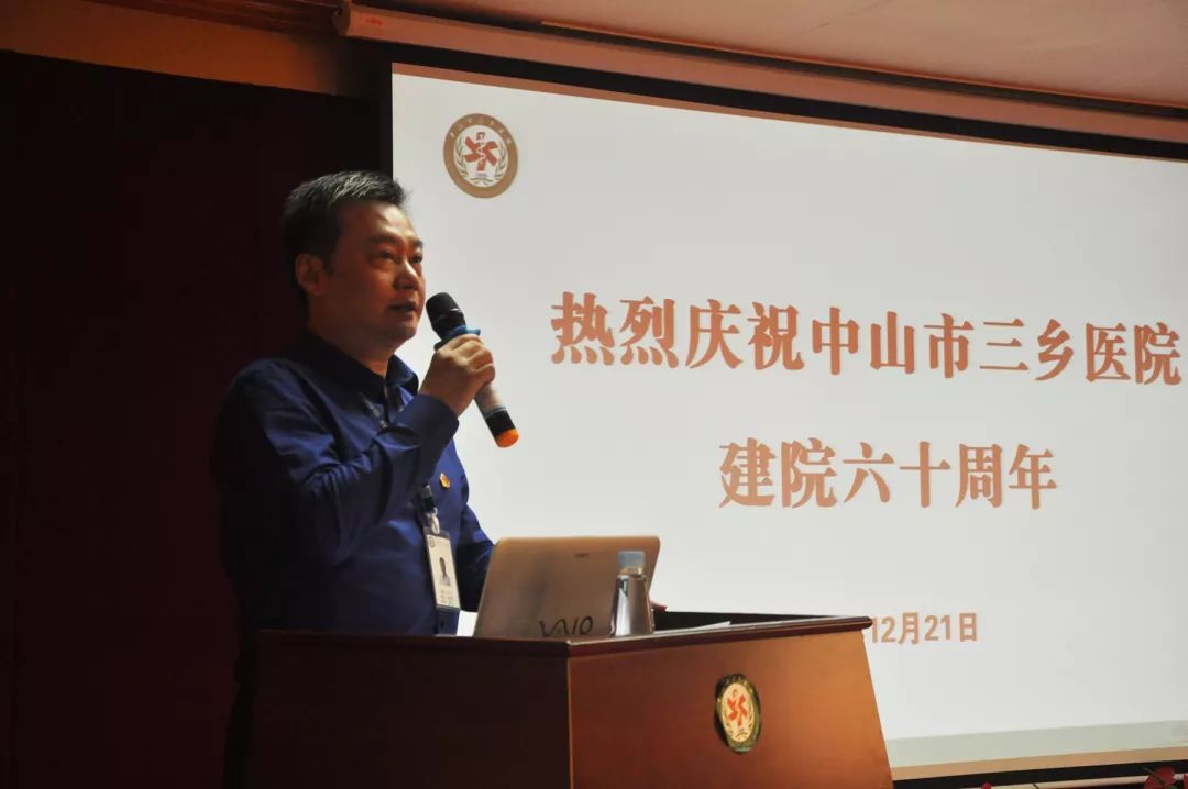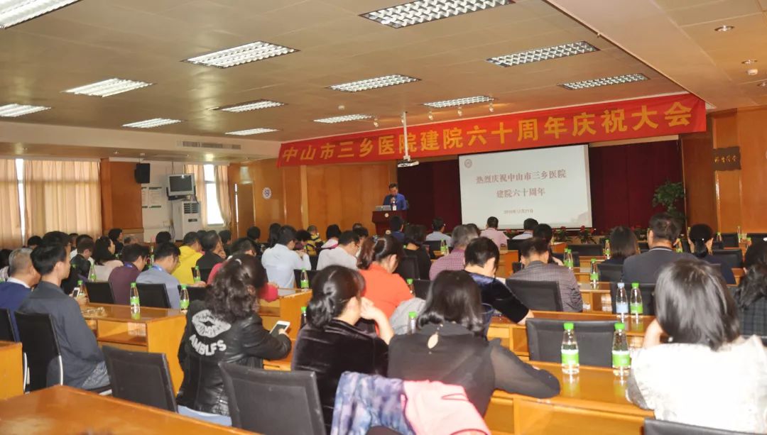 六十载风雨兼程,一甲子荣辱与共。60年,对于一个单位发展史上一件大事,也是全体员工的一件大事。为回顾历史、树立形象、凝聚人心、促进医院发展。医院于12月21日下午在六楼大会议室举办建院六十周年庆祝大会。 三乡镇卫计局局长何承建出席会议,医院退休职工代表、领导班子、中层干部、员工代表参加会议。会议由医院党总支副书记黄玉仪同志主持。 会议开始时,全体参会人员起立齐唱国歌。在漫漫的历史长河中,60年仅仅是短暂的一瞬,但对于拥有着60年历史的三乡医院来说,这是艰苦奋斗的60年,也是成果丰硕的60年。接着观看医院历史照片图集视频,该视频系统回顾了医院的发展变迁历程,以及对医院未来的展望。 李文院长在讲话中表示,60年岁月沧桑,60年砥砺奋进,三乡医院全体员工始终自强不息,励精图治。伴随着新医院的建设,我们又面临着新的历史机遇和挑战,我们深感重任在肩,深知医院能够迅速地发展,离不开党和政府的关心和支持,更是离不开全体员工共同的努力。我们要在镇党委政府的坚强领导下,乘势而上,抢抓新一轮发展机遇,秉承“仁和心诚、务实敬业”的院训精神,团结全体干部职工,全面推动医院各项事业不断前进,为建设管理现代、技术一流、服务一流的南部区域医疗中心而努力奋斗! 接着,何承建局长对三乡医院建院60周年表示祝贺,向60年来为三乡医院的发展付出辛勤劳动、作出重大贡献的历届医护人员致以崇高的敬意!他在讲话中表示,希望全体医务人员积极投入到医院的学科建设中,发挥好自己的智慧和才华,以精湛的技术、优质的服务,高尚的医德,全新的形象,不忘初心,努力工作,为搬进新院区打下坚实基础。党中央刚刚召开了改革开放40周年庆祝大会,习近平总书记发出了“改革开发再出发”的号召。三乡医院要发扬“伟大改革开放精神”,以建院60周年为新的起点,坚持走人才强院、质量立院、科教兴院的内涵建设与发展之路,不断提高医院的整体实力,不断提高医院管理水平,不断提高医疗技术水平和服务质量,为人民群众提供更加优质、高效、安全、便捷和经济的医疗服务。 会议结束后,退休职工代表、全体中层干部集体合影留念。 中山市三乡医院 2018年12月22日